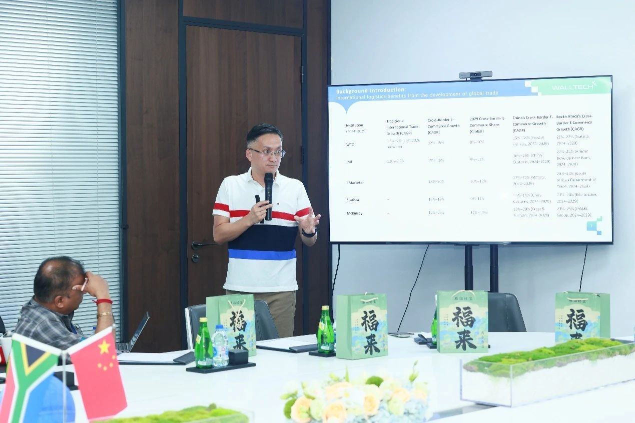 WallTech Group CEO, Mr. Shunri Guo, led the delegation through a comprehensive visit at WallTech’s Shanghai headquarters. He delivered an in-depth presentation on the evolution of China’s international trade and logistics sector, sharing how WallTech has grown alongside China’s transformation—from traditional trade to the rise of cross-border eCommerce logistics. Mr. Guo emphasized how WallTech’s digital innovation roadmap can serve as valuable reference for South Africa’s own logistics development.